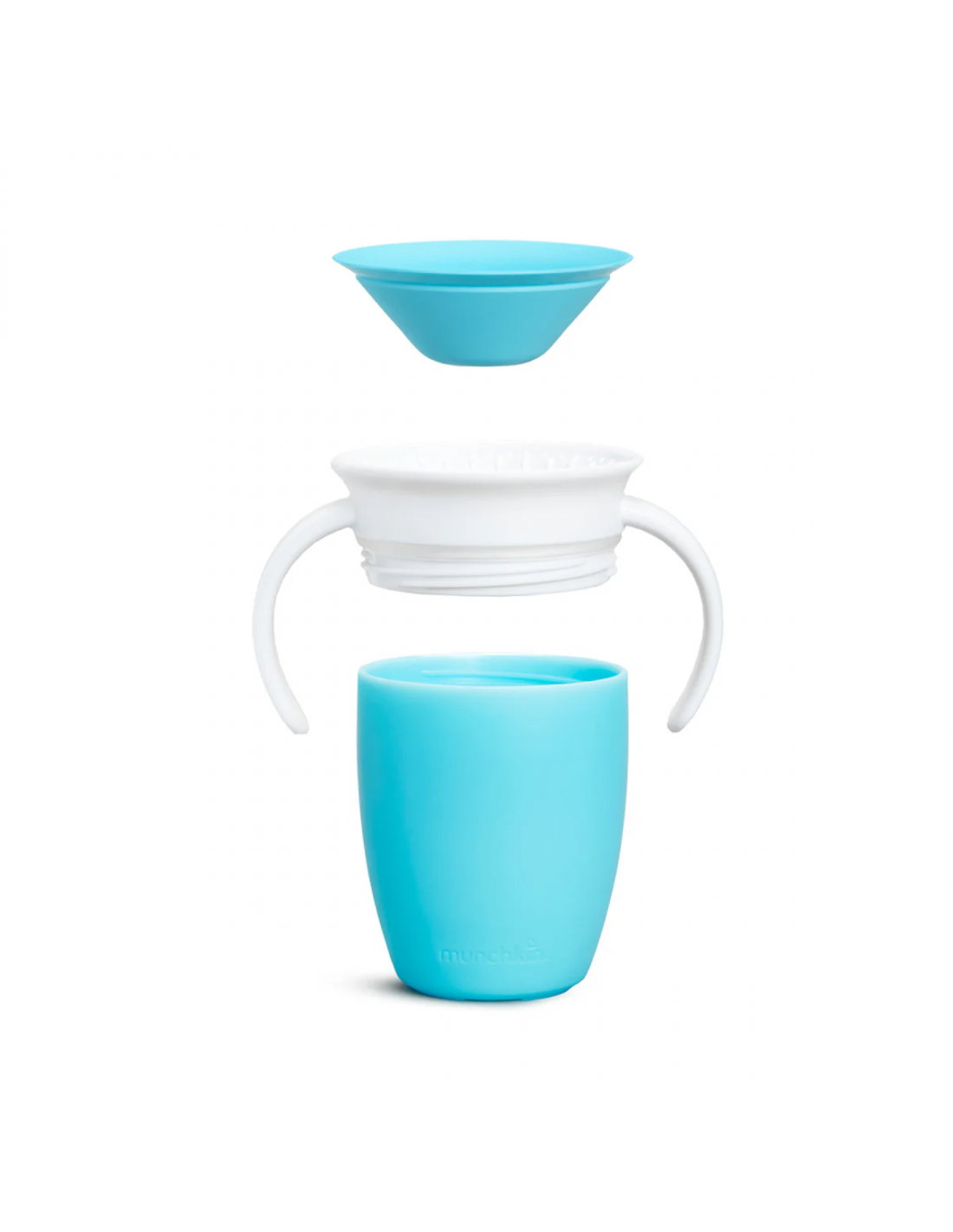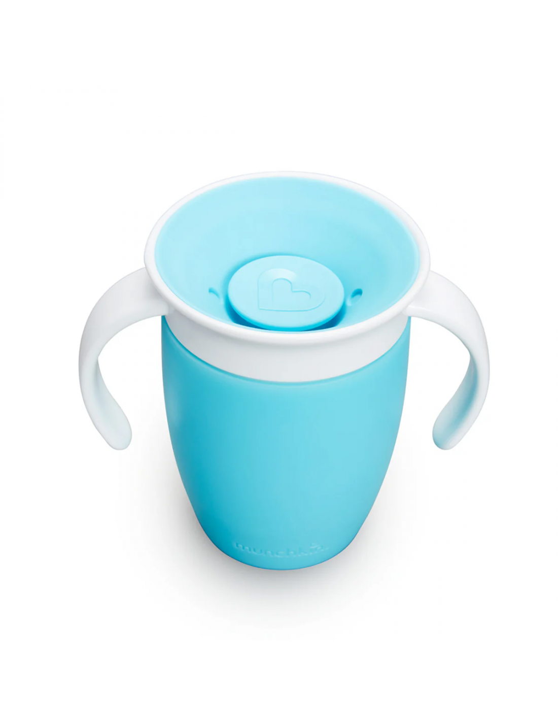Τα μικρά παιδιά λερώνουν πολύ, ειδικά όταν αρχίζουν να πίνουν από ποτήρι. Φανταστείτε έναν κόσμο χωρίς λεκέδες από υγρά - ούτε στην τσάντα σας, ούτε στο κομοδίνο, ούτε καν στα ρούχα του παιδιού σας. Δεν είναι ακριβώς θαύμα... Είναι το εκπαιδευτικό ποτήρι Miracle 360° της Munchkin. Το πρώτο ποτήρι που σχεδιάστηκε με επίκεντρο τόσο τους γονείς όσο και τα παιδιά: το εκπαιδευτικό ποτήρι Miracle 360° εξαλείφει τους λεκέδες και συμβάλλει ταυτόχρονα στην οδοντική υγεία των παιδιών. Επειδή το παιδί μπορεί να πίνει από όλη την περίμετρο, όπως από τα κανονικά ποτήρια, υποστηρίζεται η φυσιολογική ανάπτυξη των μυών στο στόμα του παιδιού. Και χωρίς επιπλέον στόμια, καλαμάκια ή άλλα τεμάχια, το εκπαιδευτικό ποτήρι Miracle 360° είναι πολύ εύχρηστο και καθαρίζεται εύκολα. Στην υγειά σας, λοιπόν!